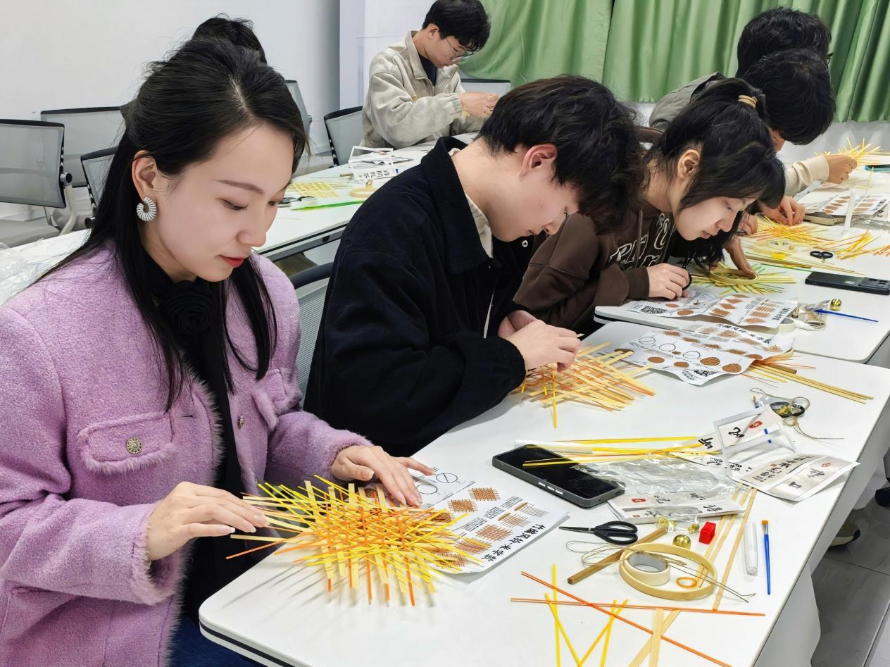 On the evening of March 31, 2025, the third session of the College's "Craftsmanship Workshop" class was held. Focusing on the ancient intangible cultural heritage craftsmanship of bamboo weaving, this session brought a unique cultural experience to faculty and students, allowing everyone to appreciate the distinctive charm of intangible cultural heritage while handcrafting bamboo weaving wind chimes, and contributing to the inheritance and development of traditional techniques.