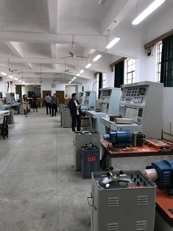 华中科技大学电气与电子工程学院实验室统一在一栋实验楼内,方便学生上实验课及进行实验室统一管理。大家首先参观了电力工程实验室,其中实验设备主要包括电力系统综合自动化试验台,电气控制及继电保护试验台,电气主接线实验示意台等,为电气工程基础、电力系统分析、电力系统继电保护、电力系统自动化等一系列课程开设本科实验。电机控制实验室主要实验设备为电机及电力拖动综合试验台。电力电子实验室主要实验设备为电力电子教学试验台。单片机实验室主要为自动化大类课程开设本科实验。电工实验室设置了两类实验室,一类为全校公选课开设实验,一类专门给电气专业学生开设。高电压实验室拥有变压器绕组波过程试验台,均匀电场和极不均匀电场下的击穿特性试验台,导线波过程试验台,空气间隙击穿试验台,实验用变压器等,为学生开设高电压方面的本科实验。除此以外,一行人还走访了电气与电子工程学院控制原理实验室,信号与系统实验室,检测技术实验室以及电工电子科技创新中心。这一系列实验室共同构成了电气学科的本科实验室,设施较为额齐全,管理十分规范,充分保证了本科教学的所有实验可以有条不紊地开展,值得学习参考。