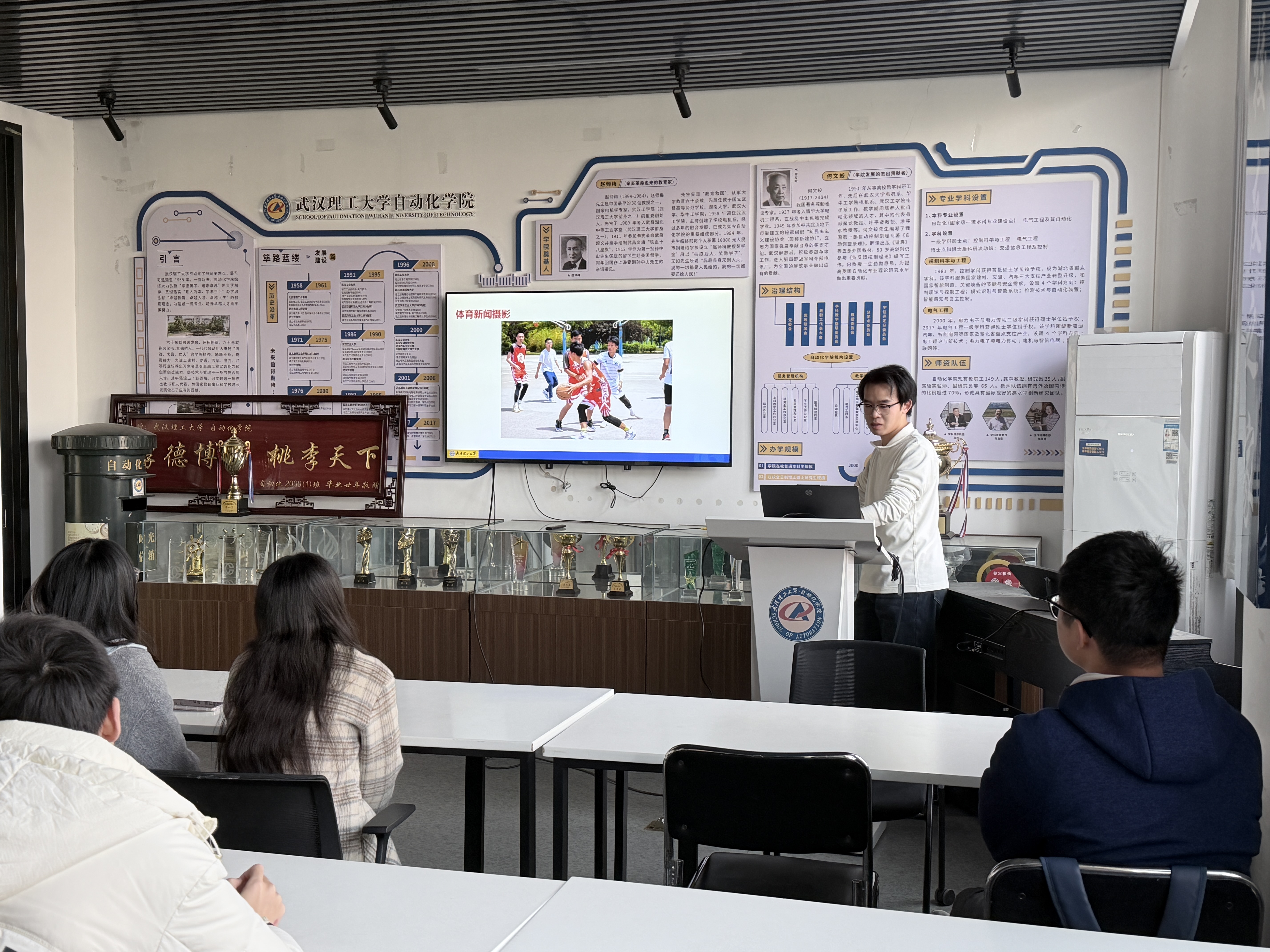 培训聚焦于校园新闻宣传的实际需求。董端倪老师开宗明义,指出新闻摄影的核心在于“定格真实瞬间,传递现场温度”。他结合自动化学院学术报告、科技竞赛、文体活动、党建团建等典型场景的图片案例,深入讲解了从前期准备到后期输出的完整工作流。