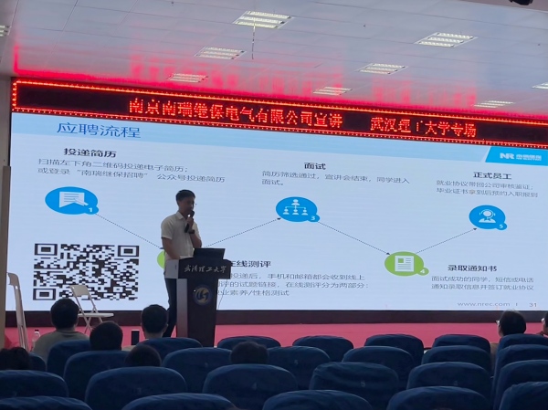 2025年9月14日下午,南京南瑞继保电气有限公司工程师刘晓鹏校友重返母校,在就业大楼东风厅开展“校友讲堂”,围绕新型电力系统建设与能源数字化转型展开深度分享,200 余名学生现场聆听。